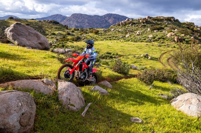 Whether you're ripping through dunes or hustling through some tight forest, handguards are absolutely necessary on a bike like this. That’s why it's equipped with them right from the factory.