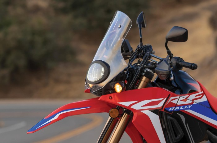 The CRF300L Rally features front and rear hydraulic discs with ABS for excellent stopping power and brake feel, for both on- and off-road use. An added plus: when dirt riding, you can turn off the ABS function for the rear wheel; on the street, it’s easy to switch it back on.