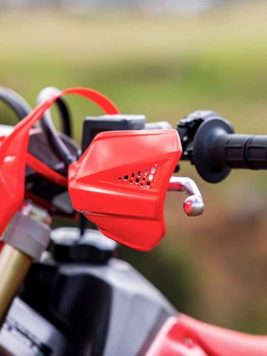 Fully integrated handguards attach right to the control-lever pivots, are color-matched to your new bike, and are even vented.